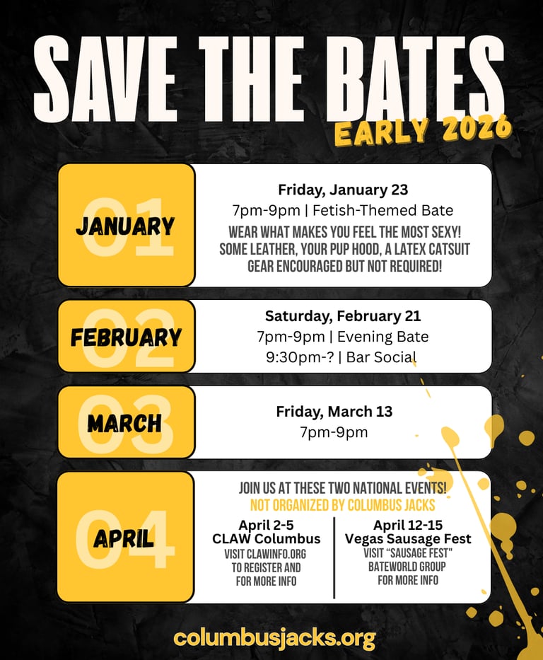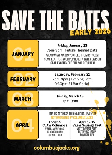 Friday, January 23, 2026 - 7-9pm - Kink/fetish bate @ Hotel near CMH airport. Register at the link above.